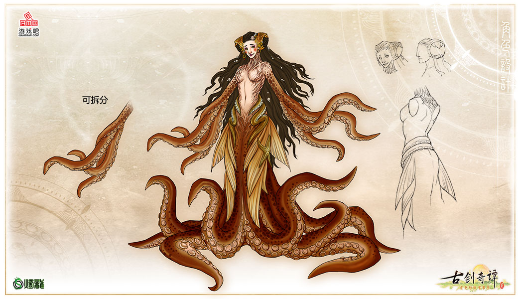 下图中的BOSS是蜃精玉怜。这位BOSS以其空前绝后的审美,认定自己是世上最美的女子。根据设定图,蜃精上身的触手是其特定的可以被拆分的部位。将触手拆分之后,这位“美女”会有怎样的反应呢。这里卖个关子,还是请玩家在实际游戏中体验吧。 [img=600,0]http://i0.gbimg.cn/2013/05/08/20130508090607715.jpg[/img] 蜃精玉怜设定图